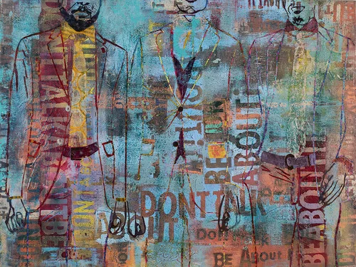 Mixed Media, Acrylic, Paper Collage on Canvas